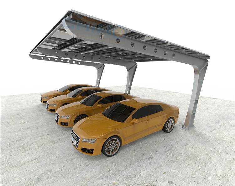 Snergytec Steel T carport solar mounting system Advantages of Cost saving and Simple design because of whole solar mounting system structure components are Highly pre-assembled·and no need welding and cutting when installed. What's more , you can see so many small hole in the solar carport mounting, it plays a role in enhancing stability . When strong winds is coming, it can across the hole then reduce Load on the surface of the carport, make enables easy access·Adding extra safety!