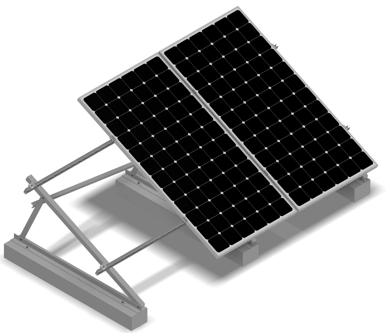 Snergytec’s SN-FRA series flat roof mounting system with footing options for both ballasted solution and roof penertration. The innovative design and high pre-assembly eliminate the need for on-site cutting, welding and enables quick and easy field PV module installation.