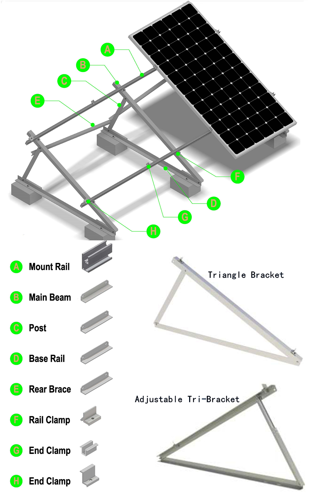 Components mostly pre-assembled in factory to assure quick and reliable installation on site. Suitable for different flat rooftop, and compatible to different types of solar modules.